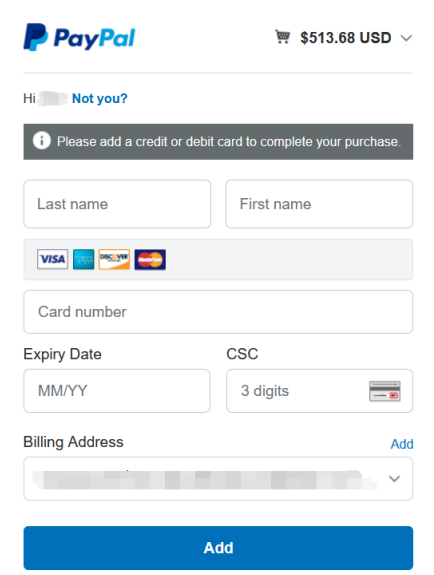 PayPal username and password, select the payment method already
