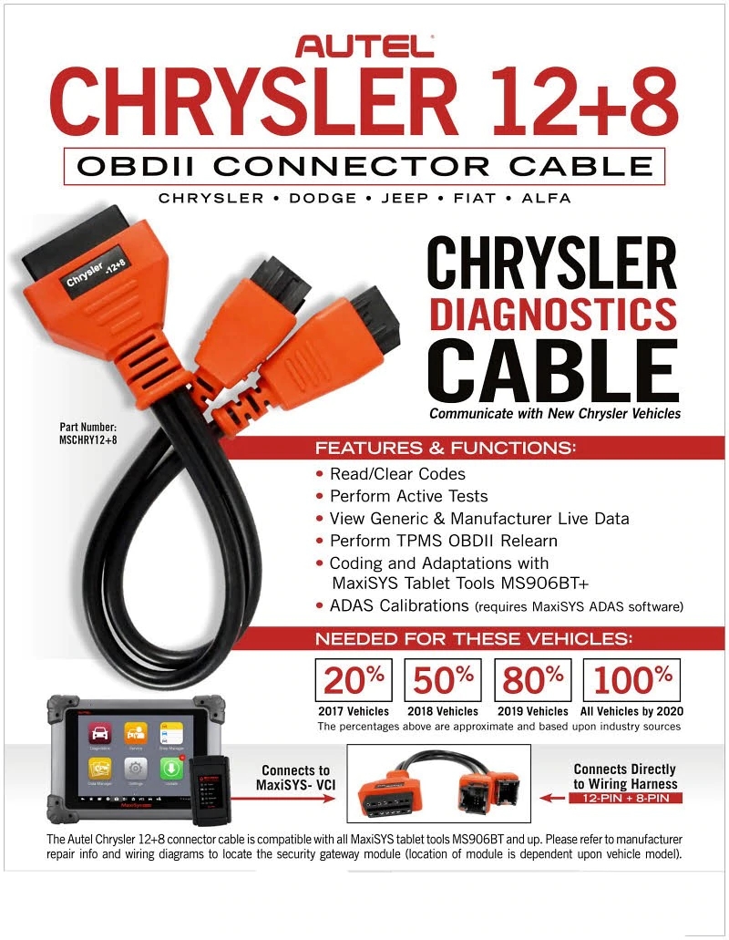 Autel Chrysler 12+8 Adaptor for Autel MaxiSys Elite/ MS908/ MS908P/ MS908S Pro