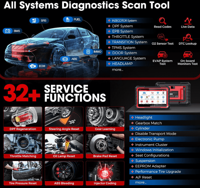 The following is a list of modern vehicle systems that this scan tool can get access to: