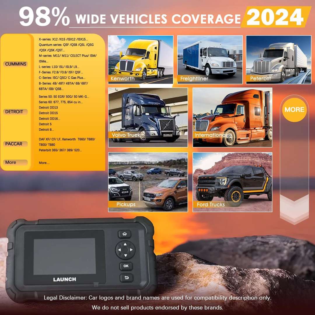 1. 2024 NEWEST Launch FIRST Truck Diesel Diagnostic Scan Tool, support 52+ different brands Truck / Lorry/Light Truck /Van /Bus/ Construction/Agricultural/Forestry